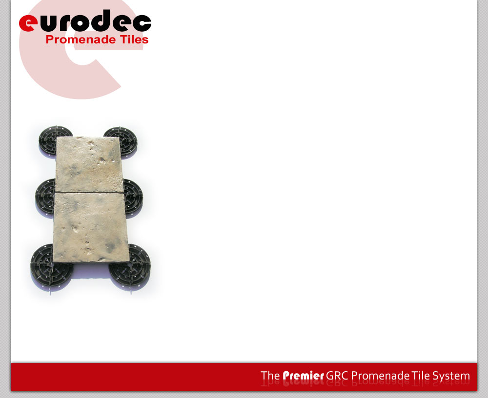 Eurodec GRC Promenade Flagstones are a specifically designed paving system to be loose laid onto paving support pads to provide an attractive, hardwearing surface to protect most flat roof waterproofing substrates from pedestrian traffic.